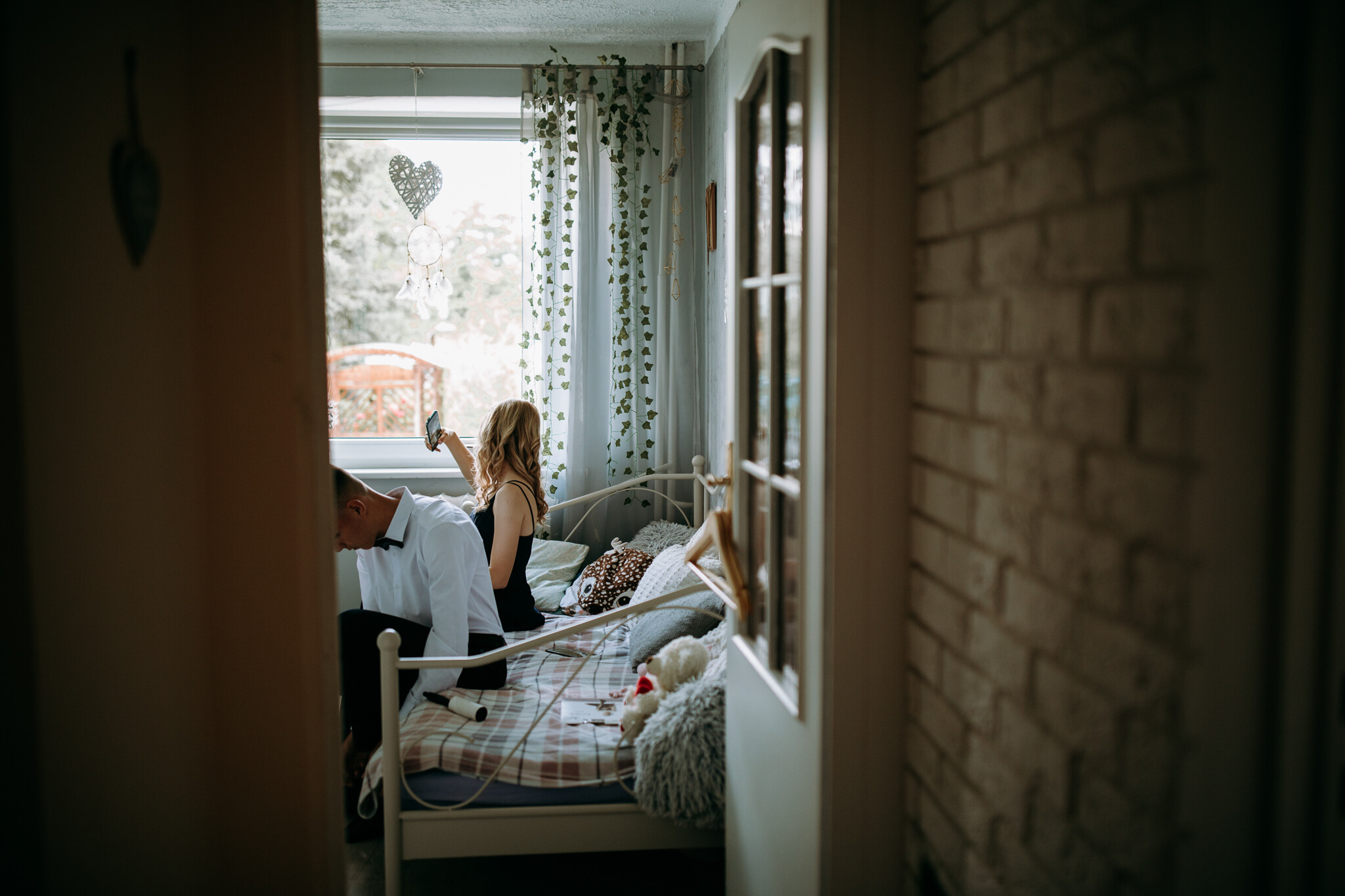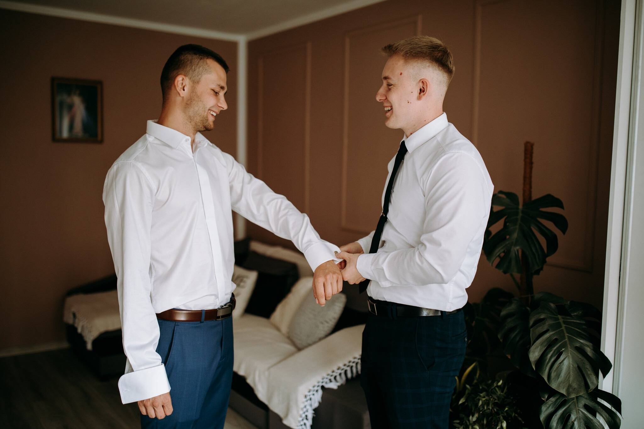 To był upalny dzień! Ale też i niezapomniany! Przygotowania odbyły się w Bartoszycach i okolicy. Ogród Kasi przeszedł najśmielsze oczekiwania. Czerwone i bujne róże były przepiękne! Postanowiliśmy wykorzystać miejsce i chwilę do uwiecznienia najważniejszego dnia pary młodej. Dużym atutem była brama zorganizowana przez sąsiadów, znajdująca się nieopodal domu Kasi, przy której Państwo młodzi mieli za zadanie wykonać pewien eksperyment "chemiczny". Ceremonia miała miejsce w Kościele św. Jana Ewangelisty i Matki Bożej Częstochowskiej w Bartoszycach, który jest jedną z głównych dominant panoramy miasta. Ślub rozpoczął się bardzo uroczyście, ponieważ to tata prowadził Kasię do ołtarza, a obrączki niosły dzieci. Kasia i Gracjan świętowali w sporym gronie znajomych oraz rodziny w Bisztynku. Sala Marysieńka budziła zachwyt swoim wystrojem lampkami. Imprezą weselną zabawiał zespół Red&White z niezastąpionym wokalem. Zabawy przy stołach były bardzo dobrze zorganizowane i tym samym zyskały zadowolenie gości. Video prowadził niezastąpiony Foto-Kiler. Już w trakcie zabawy wypuścił krótki teledysk ślubny, który wzbudził zachwyt na mediach społecznościowych.